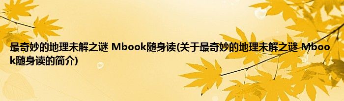 本文关于最奇妙的地理未解之谜 Mbook随身读的简介就讲解完毕,希望对大家有所帮助。