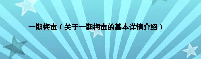 本文关于一期梅毒的基本详情介绍就讲解完毕,希望对大家有所帮助。