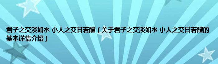 君子之交淡如水小人之交甘若醴(关于君子之交淡如水小人之交甘若醴的基本详情介绍)