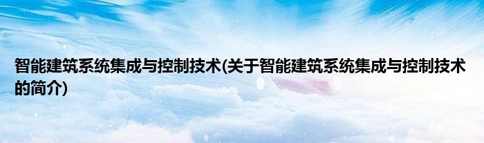 智能建筑系统集成与控制技术(关于智能建筑系统集成与控制技术的简介)