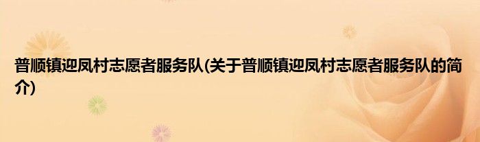本文关于普顺镇迎凤村志愿者服务队的简介就讲解完毕,希望对大家有所帮助。