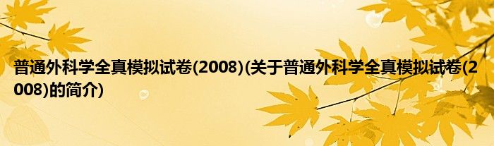 大家好,普通外科学全真模拟试卷,2008,关于普通外科学全真模拟试卷,2008的简介很多人还不知道,现在让我们一起来看看吧!