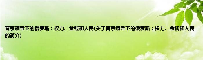 本文关于普京领导下的俄罗斯:权力、金钱和人民的简介就讲解完毕,希望对大家有所帮助。