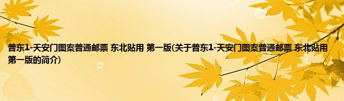本文关于普东1-天安门图案普通邮票 东北贴用,第一版的简介就讲解完毕,希望对大家有所帮助。