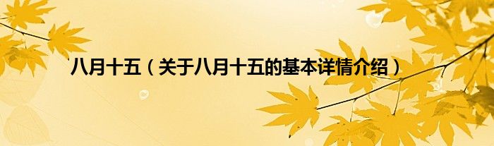 本文关于八月十五的基本详情介绍就讲解完毕,希望对大家有所帮助。