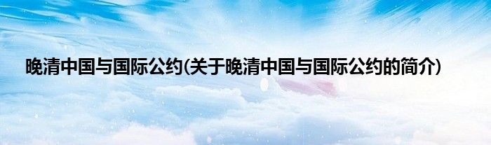 大家好,晚清中国与国际公约,关于晚清中国与国际公约的简介很多人还不知道,现在让我们一起来看看吧!