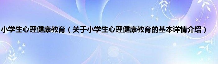 本文关于小学生心理健康教育的基本详情介绍就讲解完毕,希望对大家有所帮助。