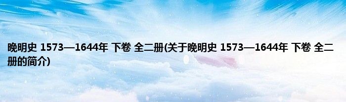 本文关于晚明史 1573—1644年 下卷 全二册的简介就讲解完毕,希望对大家有所帮助。