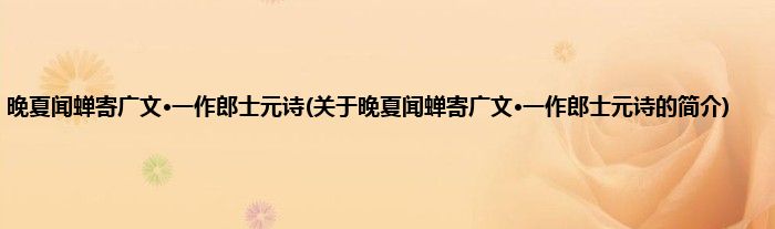 本文关于晚夏闻蝉寄广文·一作郎士元诗的简介就讲解完毕,希望对大家有所帮助。