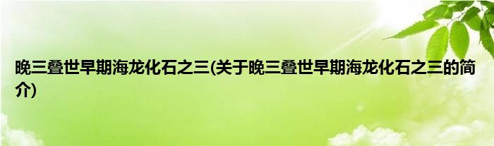 本文关于晚三叠世早期海龙化石之三的简介就讲解完毕,希望对大家有所帮助。