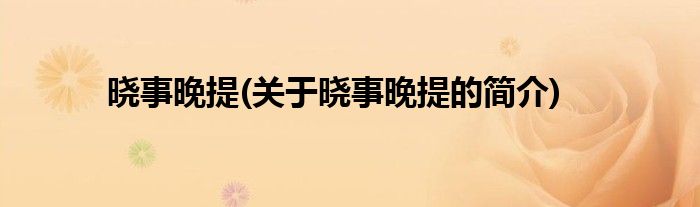 大家好,晓事晚提,关于晓事晚提的简介很多人还不知道,现在让我们一起来看看吧!