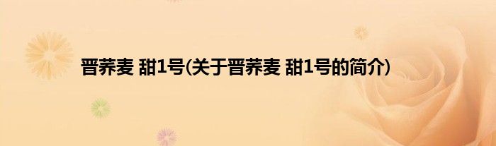 本文关于晋荞麦 甜1号的简介就讲解完毕,希望对大家有所帮助。