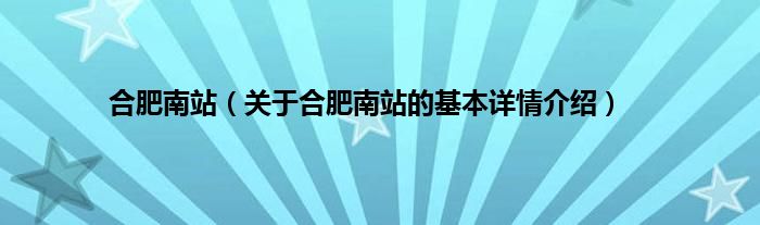 本文关于合肥南站的基本详情介绍就讲解完毕,希望对大家有所帮助。