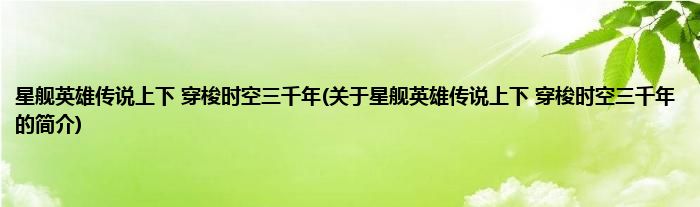 本文关于星舰英雄传说上下,穿梭时空三千年的简介就讲解完毕,希望对大家有所帮助。