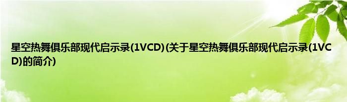 本文关于星空热舞俱乐部现代启示录(1VCD)的简介就讲解完毕,希望对大家有所帮助。
