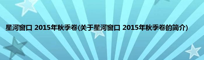 本文关于星河窗口 2015年秋季卷的简介就讲解完毕,希望对大家有所帮助。
