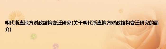 大家好,明代浙直地方财政结构变迁研究,关于明代浙直地方财政结构变迁研究的简介很多人还不知道,现在让我们一起来看看吧!