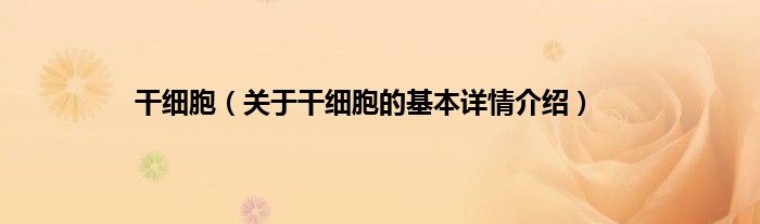 本文关于干细胞的基本详情介绍就讲解完毕,希望对大家有所帮助。