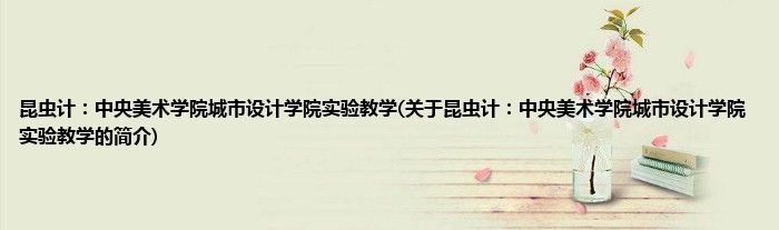本文关于昆虫计:中央美术学院城市设计学院实验教学的简介就讲解完毕,希望对大家有所帮助。