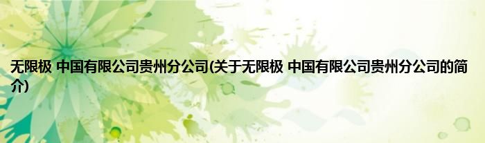 本文关于无限极 中国有限公司贵州分公司的简介就讲解完毕,希望对大家有所帮助。