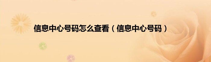 大家好,精选小编来为大家解答以上问题。信息中心号码怎么查看,信息中心号码很多人还不知道,现在让我们一起来看看吧!