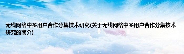 大家好,无线网络中多用户合作分集技术研究,关于无线网络中多用户合作分集技术研究的简介很多人还不知道,现在让我们一起来看看吧!