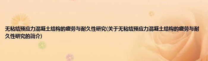 本文关于无粘结预应力混凝土结构的疲劳与耐久性研究的简介就讲解完毕,希望对大家有所帮助。
