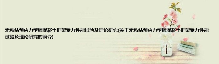 大家好,无粘结预应力型钢混凝土框架受力性能试验及理论研究,关于无粘结预应力型钢混凝土框架受力性能试验及理论研究的简介很多人还不知道,现在让我们一起来看看吧!