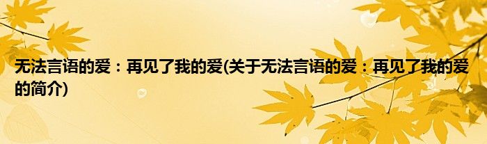 本文关于无法言语的爱:再见了我的爱的简介就讲解完毕,希望对大家有所帮助。