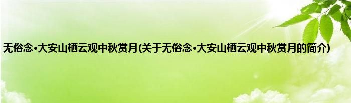 本文关于无俗念·大安山栖云观中秋赏月的简介就讲解完毕,希望对大家有所帮助。
