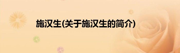 大家好,施汉生,关于施汉生的简介很多人还不知道,现在让我们一起来看看吧!