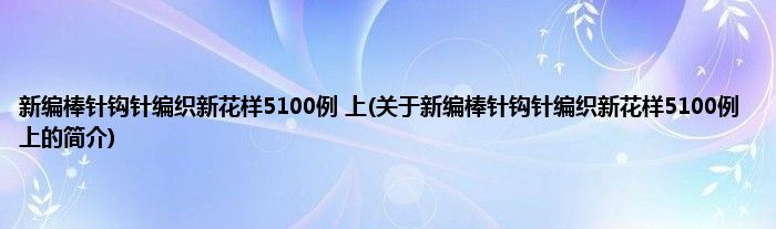 本文关于新编棒针钩针编织新花样5100例 上的简介就讲解完毕,希望对大家有所帮助。