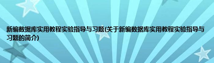 大家好,新编数据库实用教程实验指导与习题,关于新编数据库实用教程实验指导与习题的简介很多人还不知道,现在让我们一起来看看吧!