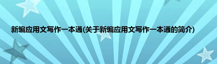本文关于新编应用文写作一本通的简介就讲解完毕,希望对大家有所帮助。
