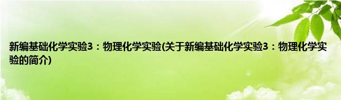 本文关于新编基础化学实验3:物理化学实验的简介就讲解完毕,希望对大家有所帮助。