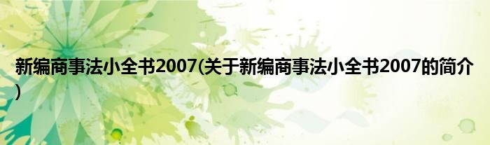 1、 《新编商事法小全书2007》是2006年法律出版社出版的图书。