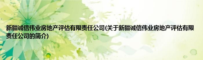 大家好,新疆诚信伟业房地产评估有限责任公司,关于新疆诚信伟业房地产评估有限责任公司的简介很多人还不知道,现在让我们一起来看看吧!