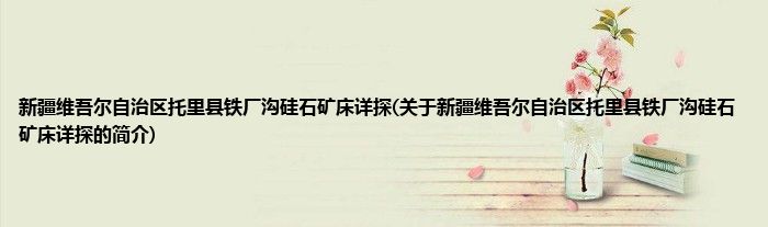 本文关于新疆维吾尔自治区托里县铁厂沟硅石矿床详探的简介就讲解完毕,希望对大家有所帮助。