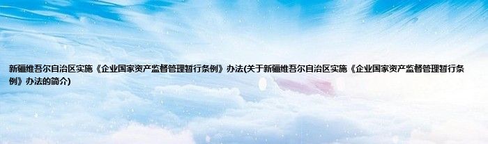 大家好,新疆维吾尔自治区实施《企业国家资产监督管理暂行条例》办法,关于新疆维吾尔自治区实施《企业国家资产监督管理暂行条例》办法的简介很多人还不知道,现在让我们一起来看看吧!