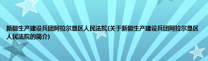 本文关于新疆生产建设兵团阿拉尔垦区人民法院的简介就讲解完毕,希望对大家有所帮助。