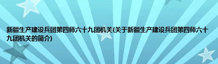 大家好,新疆生产建设兵团第四师六十九团机关,关于新疆生产建设兵团第四师六十九团机关的简介很多人还不知道,现在让我们一起来看看吧!