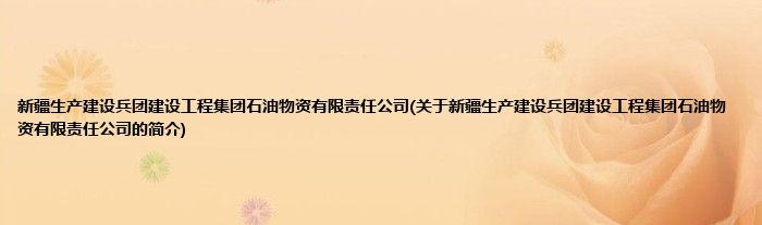 大家好,新疆生产建设兵团建设工程集团石油物资有限责任公司,关于新疆生产建设兵团建设工程集团石油物资有限责任公司的简介很多人还不知道,现在让我们一起来看看吧!
