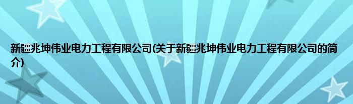 本文关于新疆兆坤伟业电力工程有限公司的简介就讲解完毕,希望对大家有所帮助。