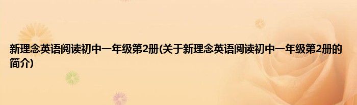 本文关于新理念英语阅读初中一年级第2册的简介就讲解完毕,希望对大家有所帮助。