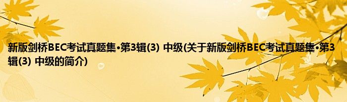 1、 《新版剑桥BEC考试真题集·第3辑(3)(中级)》是2015年商务印书馆出版的图书。
