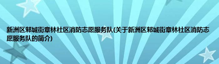 1、 新洲区邾城街章林社区消防志愿服务队是由武汉市新洲区邾城街章林社区志愿者协会领导下的志愿团体。