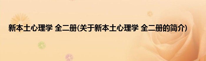 大家好,新本土心理学 全二册,关于新本土心理学 全二册的简介很多人还不知道,现在让我们一起来看看吧!