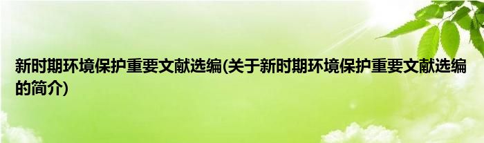 本文关于新时期环境保护重要文献选编的简介就讲解完毕,希望对大家有所帮助。