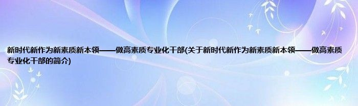 本文关于新时代新作为新素质新本领——做高素质专业化干部的简介就讲解完毕,希望对大家有所帮助。