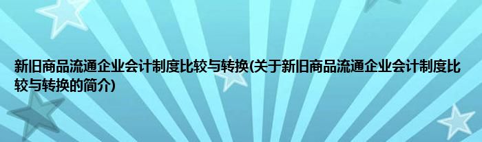 大家好,新旧商品流通企业会计制度比较与转换,关于新旧商品流通企业会计制度比较与转换的简介很多人还不知道,现在让我们一起来看看吧!